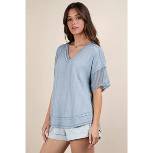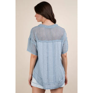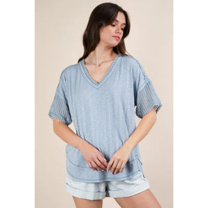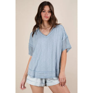 VERY J Oversized Contrast Knit Comfy Casual Top