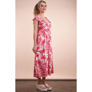 The Tropical Printed Midi Summer Boho Dress is a breezy and vibrant piece perfect for warm-weather occasions. With its tropical print and midi length, it exudes a laid-back bohemian charm. This dress is ideal for strolling on the beach, attending summer parties, or embracing a carefree vacation vibe.