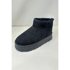 Suede round toe platform booties are stylish and trendy footwear options that can add a fashionable touch to any outfit. The suede material provides a luxurious and sophisticated look, while the round toe design offers comfort and ample room for your toes. The platform heel adds height and creates a chic silhouette. These booties are versatile and can be paired with a variety of outfits, from casual jeans and a sweater to a more dressed-up dress or skirt ensemble. They are a great addition to any fashion-forward wardrobe.