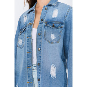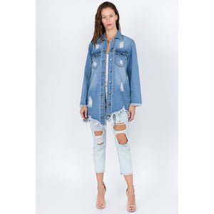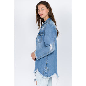 Distressed frayed hem denim jackets are a trendy choice for adding a touch of edginess to your outfit. The distressed details and frayed hems give off a relaxed and effortlessly cool vibe. This style of jacket is versatile and can be worn with a variety of outfits, from casual to more dressed up looks. The distressed finish adds a worn-in, vintage feel to the jacket, perfect for those who love a bit of retro flair. Pair it with your favorite jeans and a graphic tee for a laid-back, stylish ensemble. Stay on-trend with a distressed frayed hem denim jacket this season!