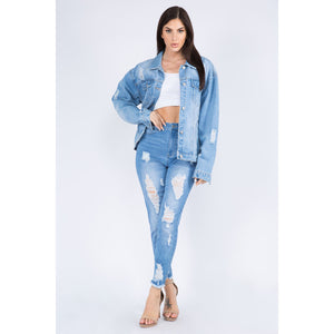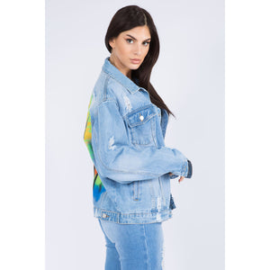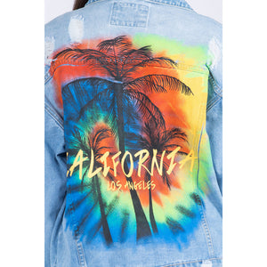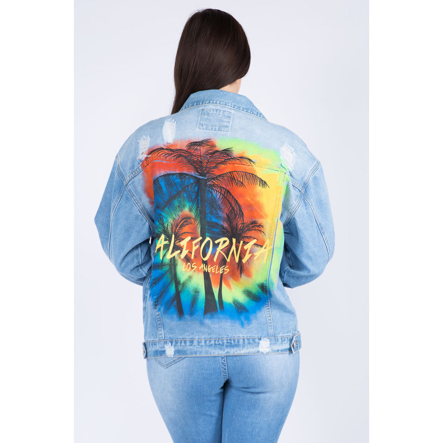 American Bazi Full Size Painted Back Distressed Denim Jacket