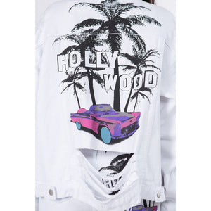 American Bazi Graphic Distressed Long Sleeve Denim Jacket