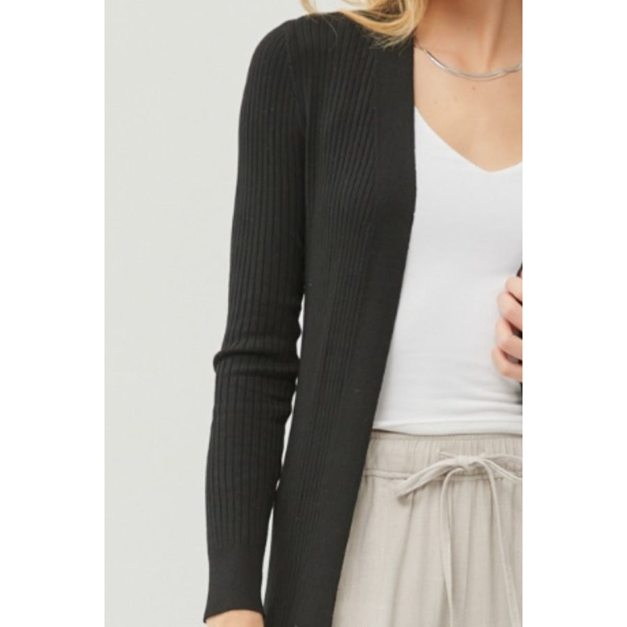 Be Cool Ribbed Open Front Long Sleeve Cardigan