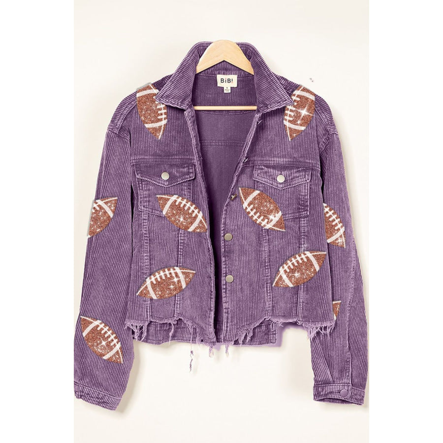 BiBi Football Sequin Embroidery Washed Corduroy Jacket