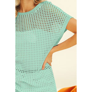 The openwork short sleeve knit cover-up is a stylish and versatile piece that adds a touch of sophistication to your outfit. Featuring intricate openwork details and short sleeves, this cover-up is perfect for adding a layer of texture to your look. The knit fabric provides comfort and warmth, making it ideal for transitioning between seasons or lounging at home. Whether worn over a swimsuit at the beach or paired with a tank top and jeans for a casual day out, this cover-up offers a chic and effortless style. The short sleeves add a breezy and relaxed feel, perfect for staying cool on warmer days. Effortlessly chic and easy to style, the openwork short sleeve knit cover-up is a versatile and fashionable addition to your wardrobe.