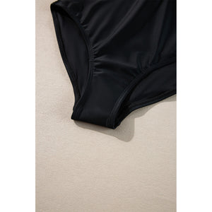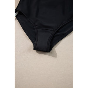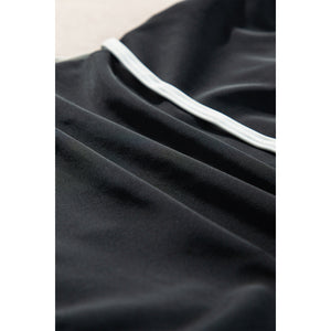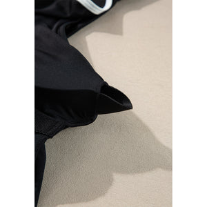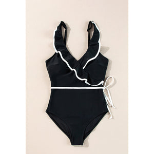Black Color Contrast Ruffled Wrap V Neck Swimsuit
