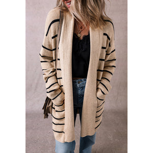 Black Stripe Shawl Neckline Open Cardigan with Pockets
