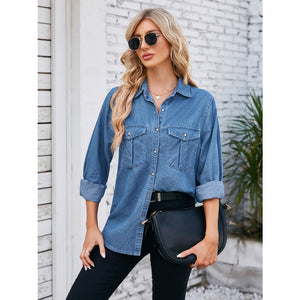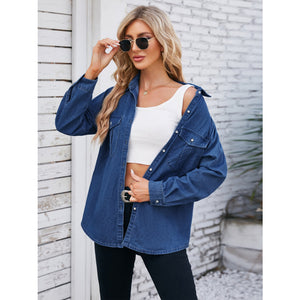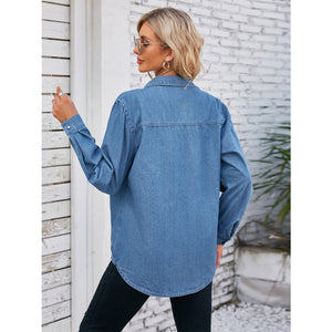 Button Up Collared Neck Denim Jacket