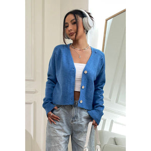 Button Up Long Sleeve Cropped Cardigan