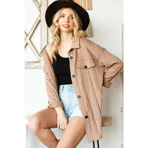 Cable-Knit Button Up Dropped Shoulder Jacket