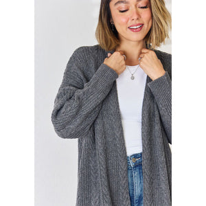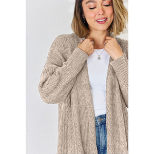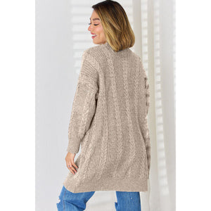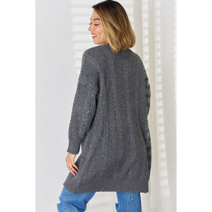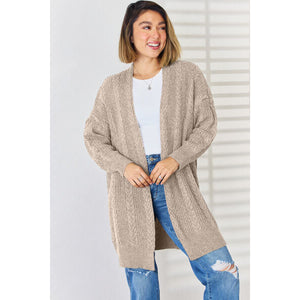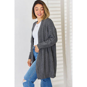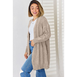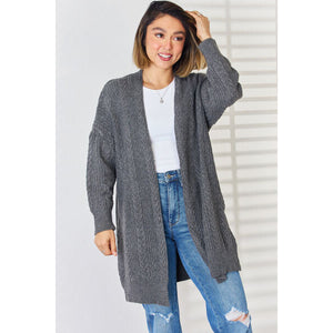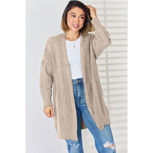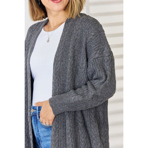 Cable-Knit Open Front Dropped Shoulder Cardigan