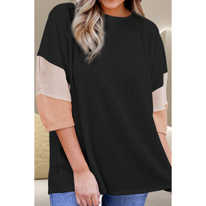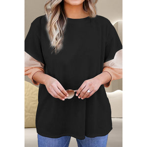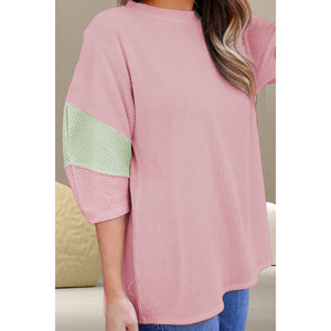 Color Block Round Neck Three-Quarter Sleeve Blouse