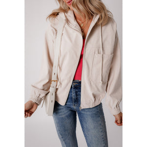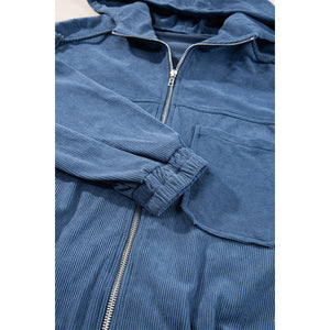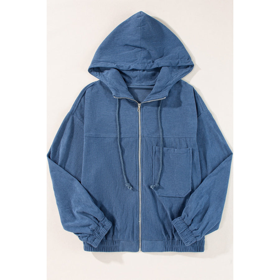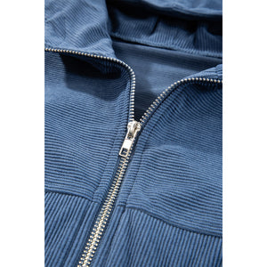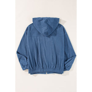 Corduroy Zip Up Long Sleeve Hooded Jacket