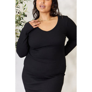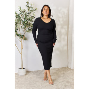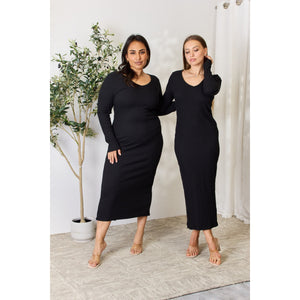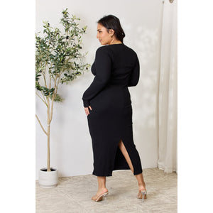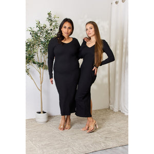 Culture Code Full Size Ribbed Long Sleeve Midi Slit Dress