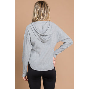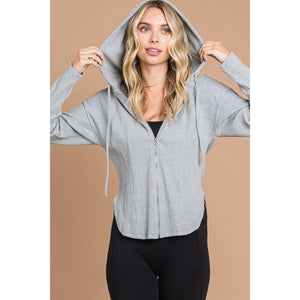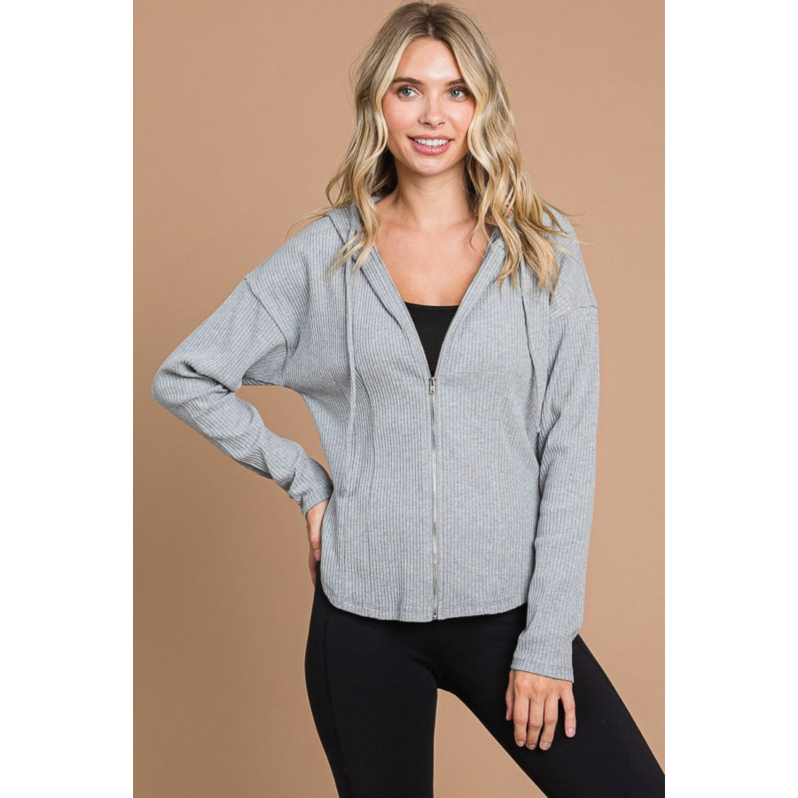 Culture Code Full Size Ribbed Zip Up Drawstring Hooded Jacket