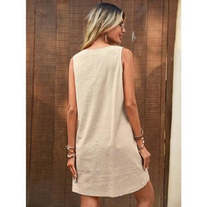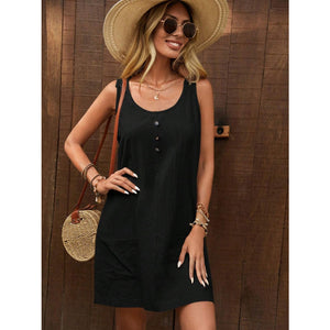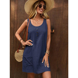 Decor Button Mini Tank Dress with Pockets