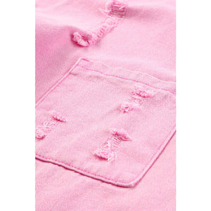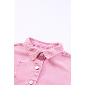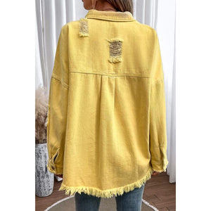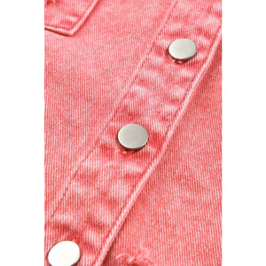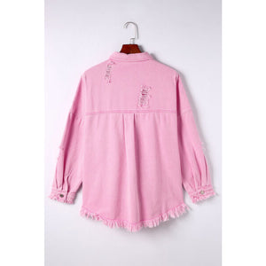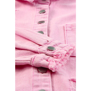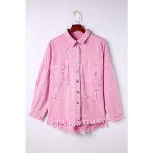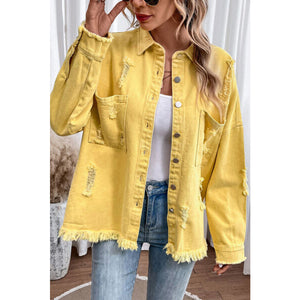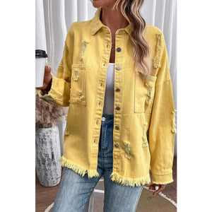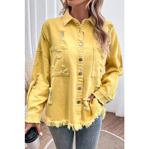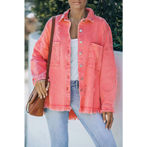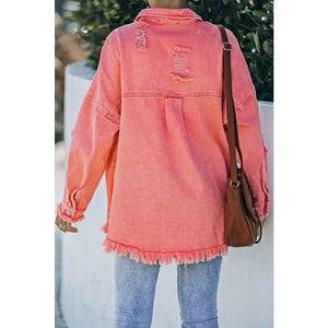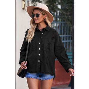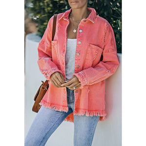 Distressed Button Up Raw Hem Denim Jacket