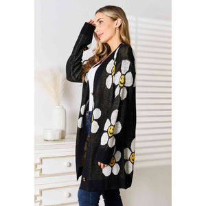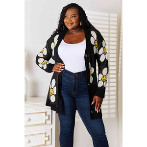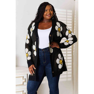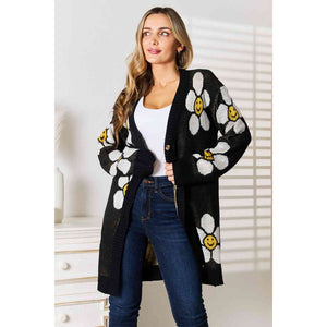 Double Take Floral Button Down Longline Cardigan