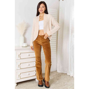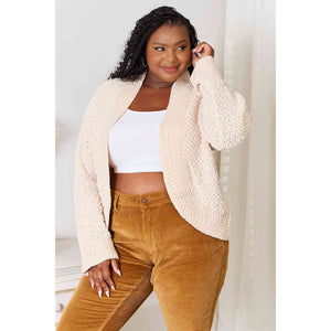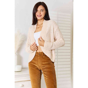 This open-front long-sleeve cardigan is a cozy and versatile staple for any wardrobe. The long sleeves and open front design make it perfect for layering over any outfit, while the comfortable fabric ensures all-day comfort.