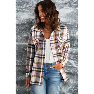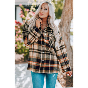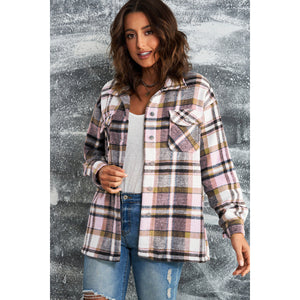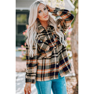 Double Take Plaid Button Front Shirt Jacket with Breast Pockets