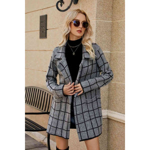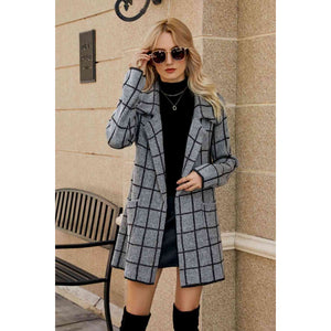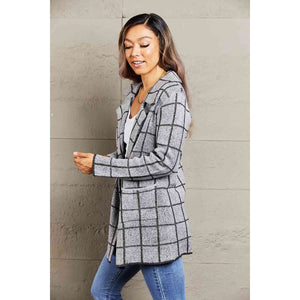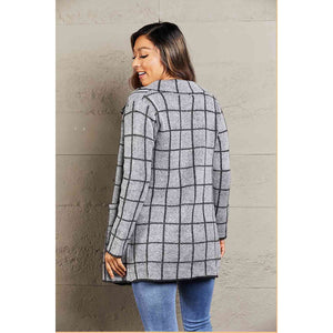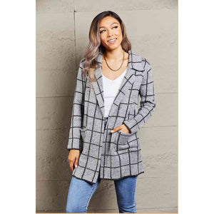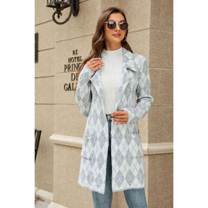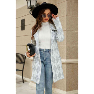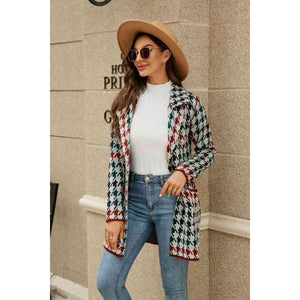 Double Take Printed Open Front Lapel Collar Cardigan with Pockets