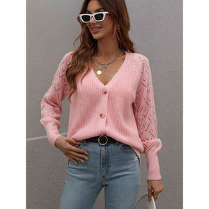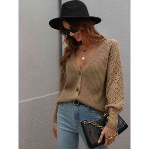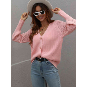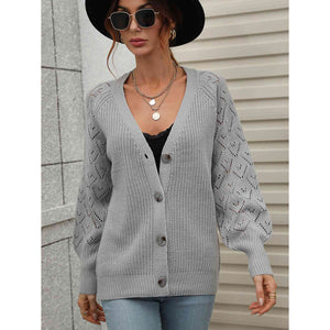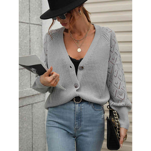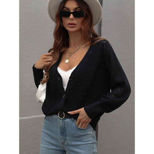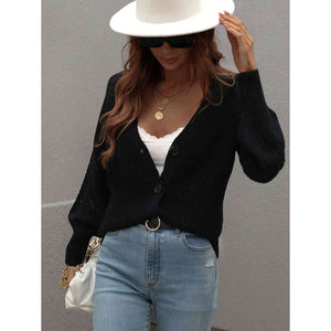 Double Take Rib-Knit Plunge Raglan Sleeve Cardigan