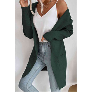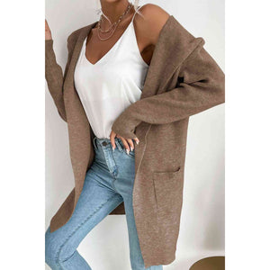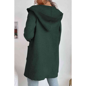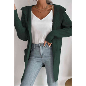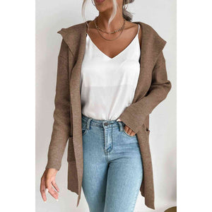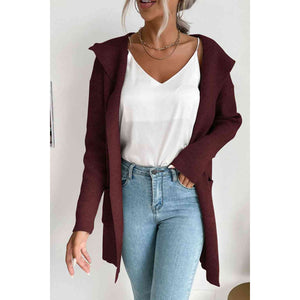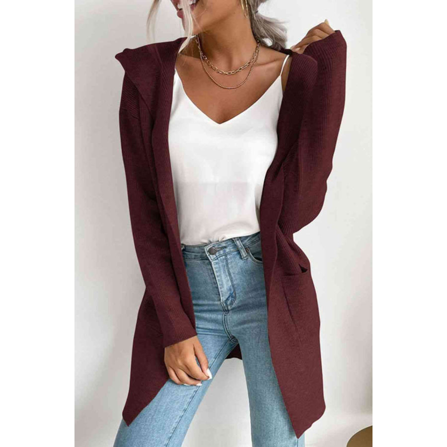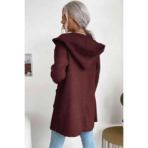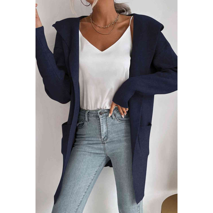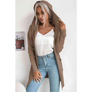 Double Take Ribbed Open Front Hooded Cardigan with Pockets