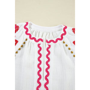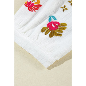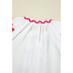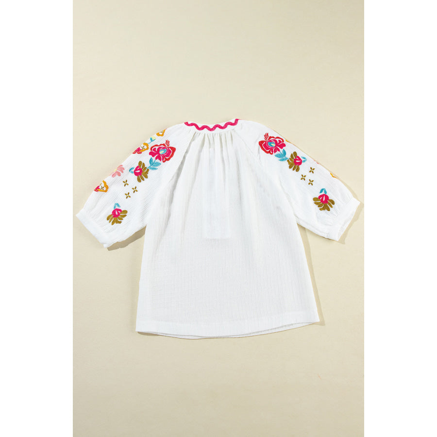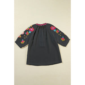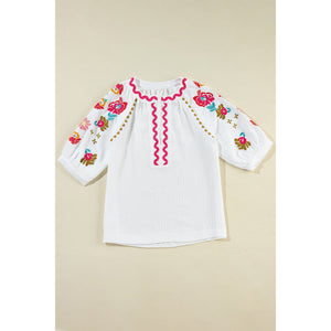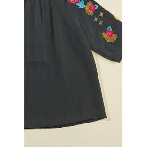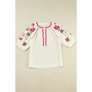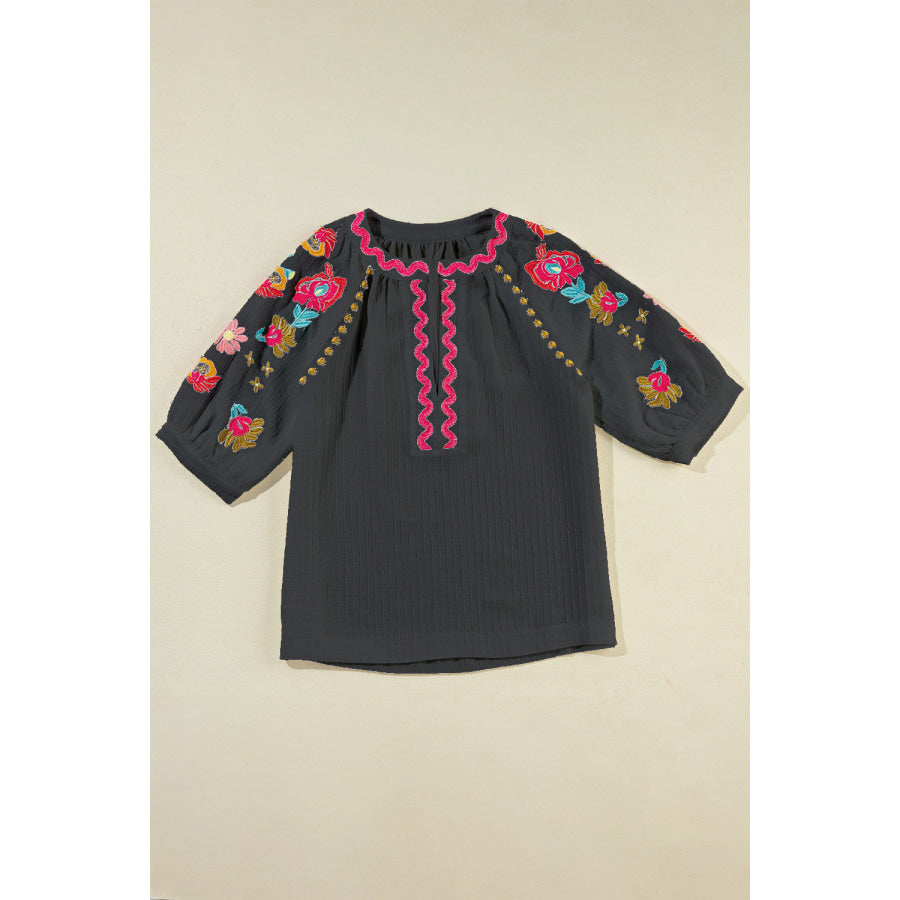 Embroidered Notched Half Sleeve Blouse