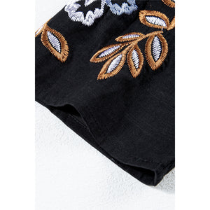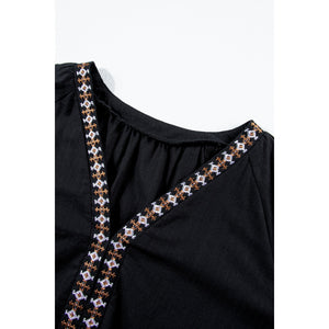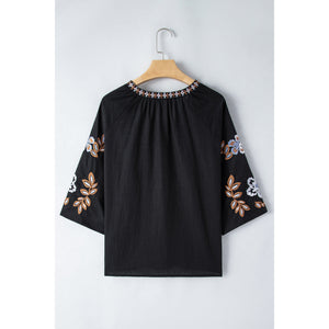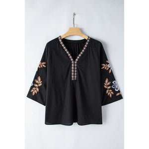 Embroidered V-Neck Three-Quarter Sleeve Blouse