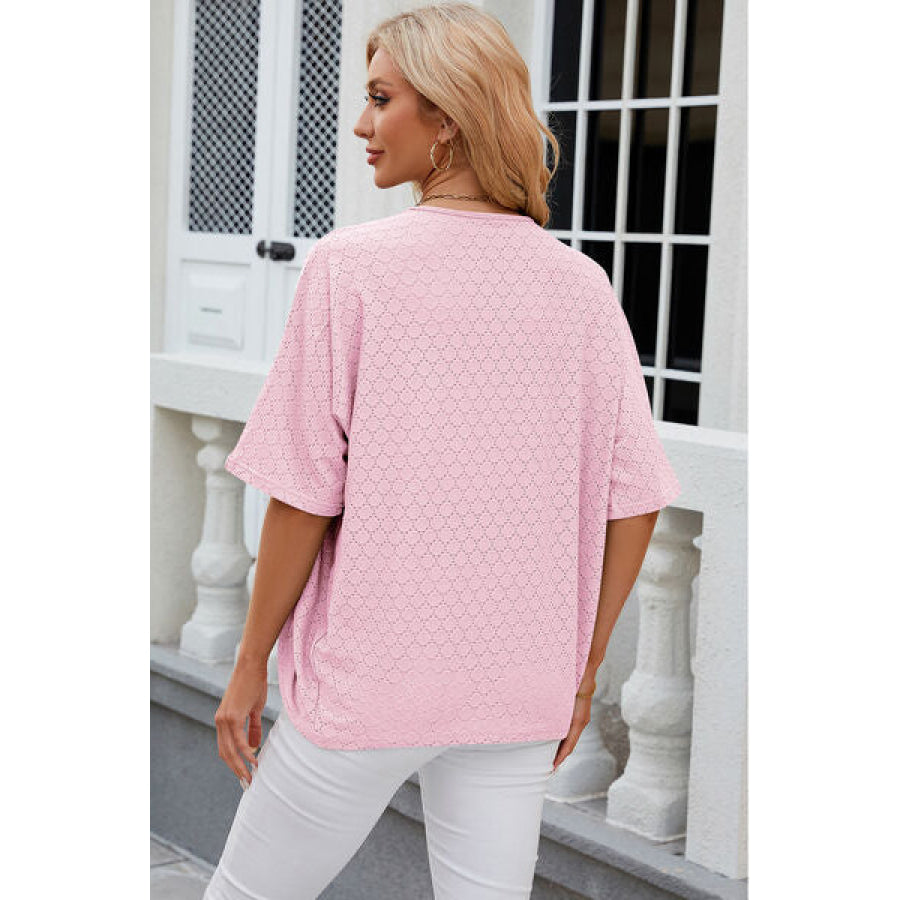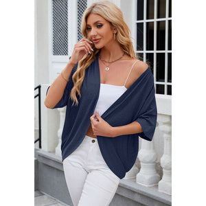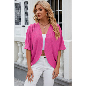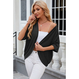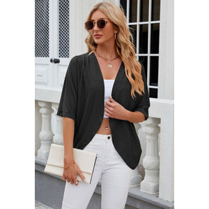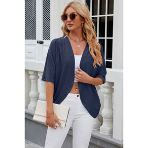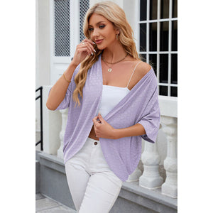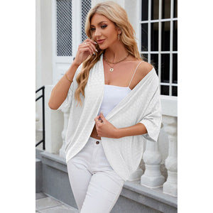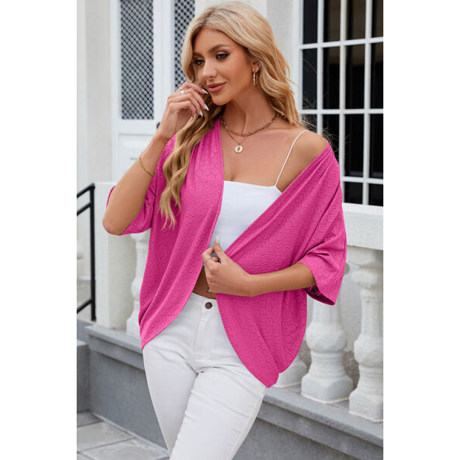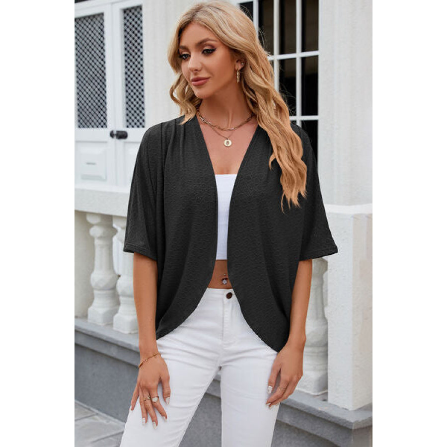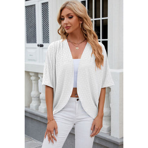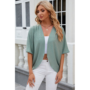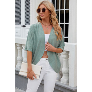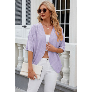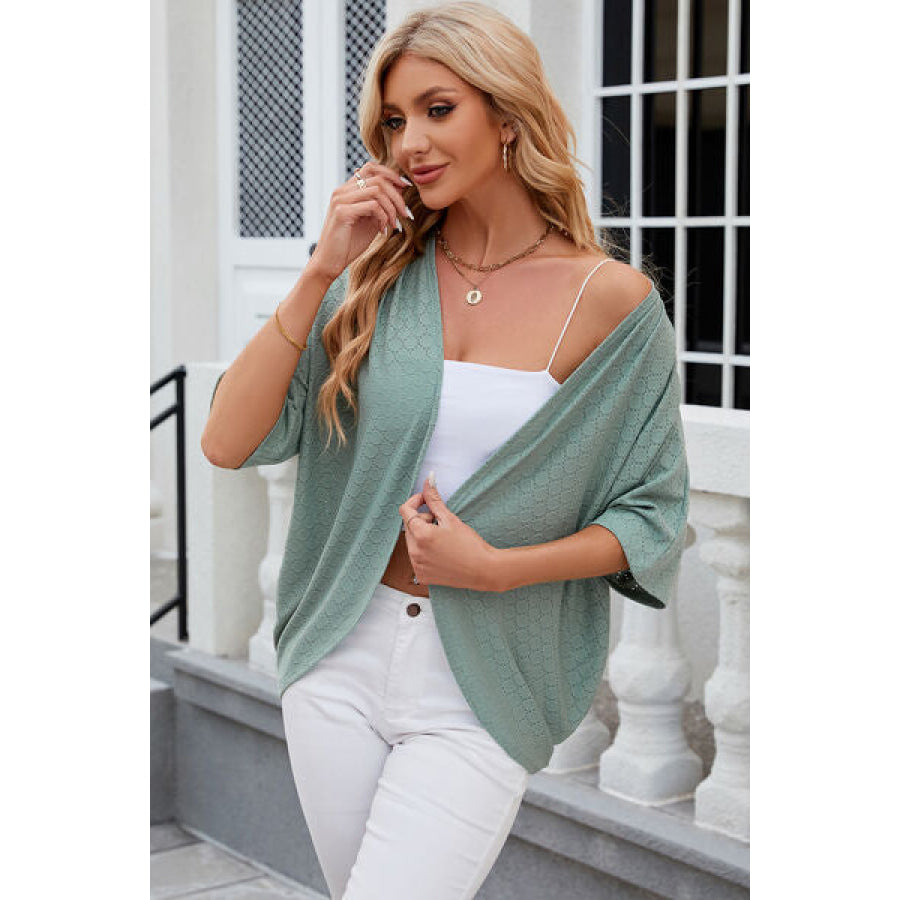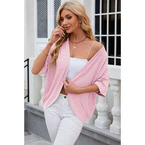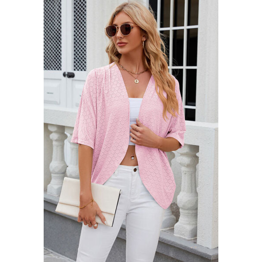 Eyelet Open Front Half Sleeve Cardigan