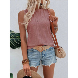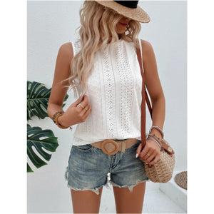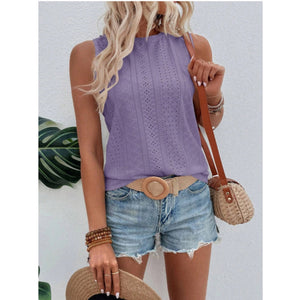Eyelet Round Neck Tank