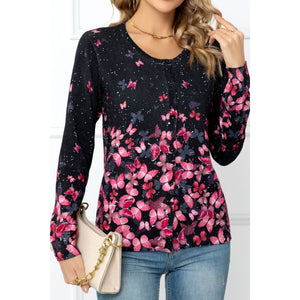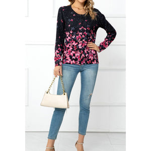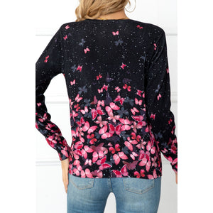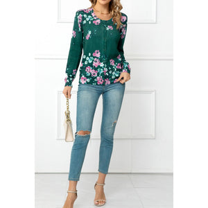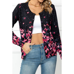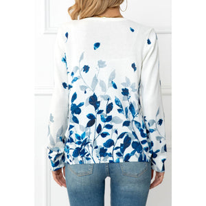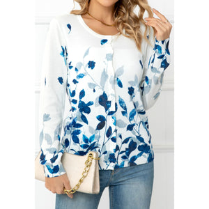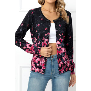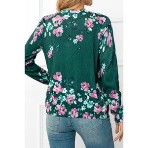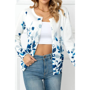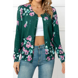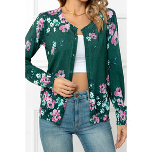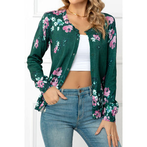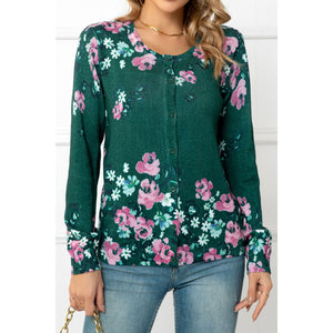 Floral Button Front Round Neck Cardigan