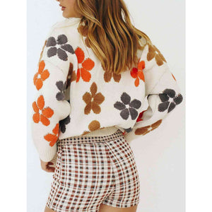 Floral V-Neck Button Up Long Sleeve Cardigan