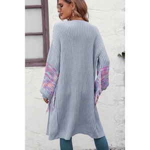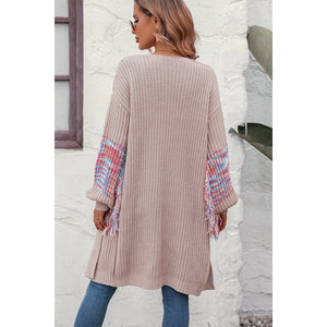 Fringe Sleeve Dropped Shoulder Cardigan