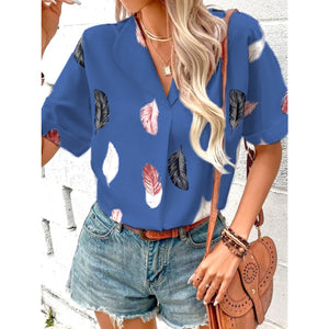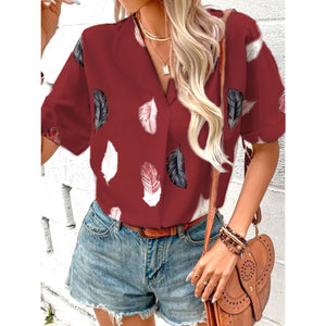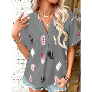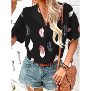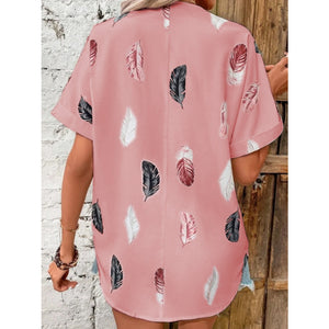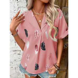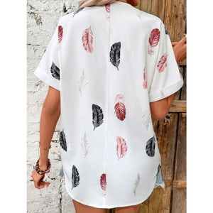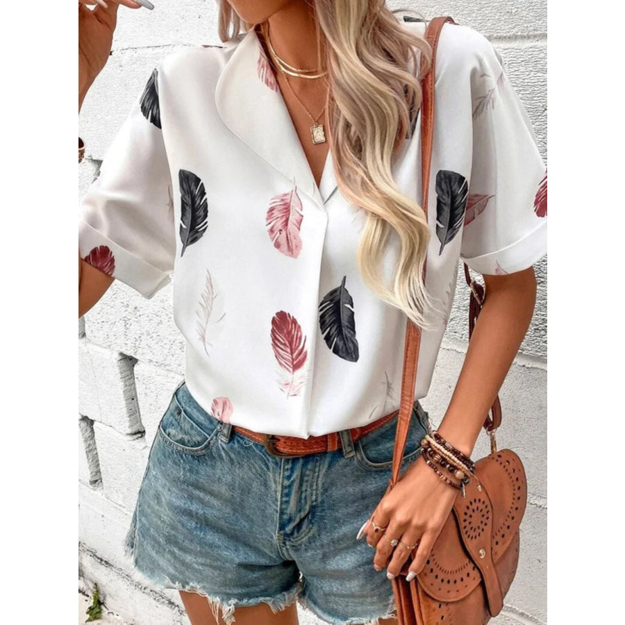 Full Size Printed Collared Neck Short Sleeve Blouse