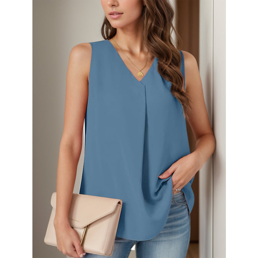 Full Size Ruched V-Neck Tank