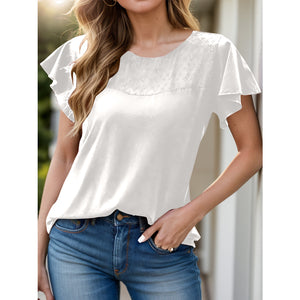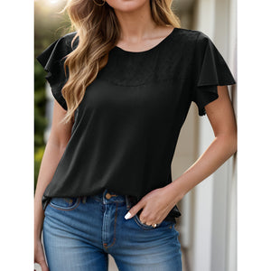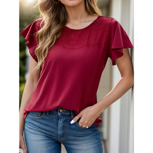 Full Size Ruffled Round Neck Short Sleeve Blouse