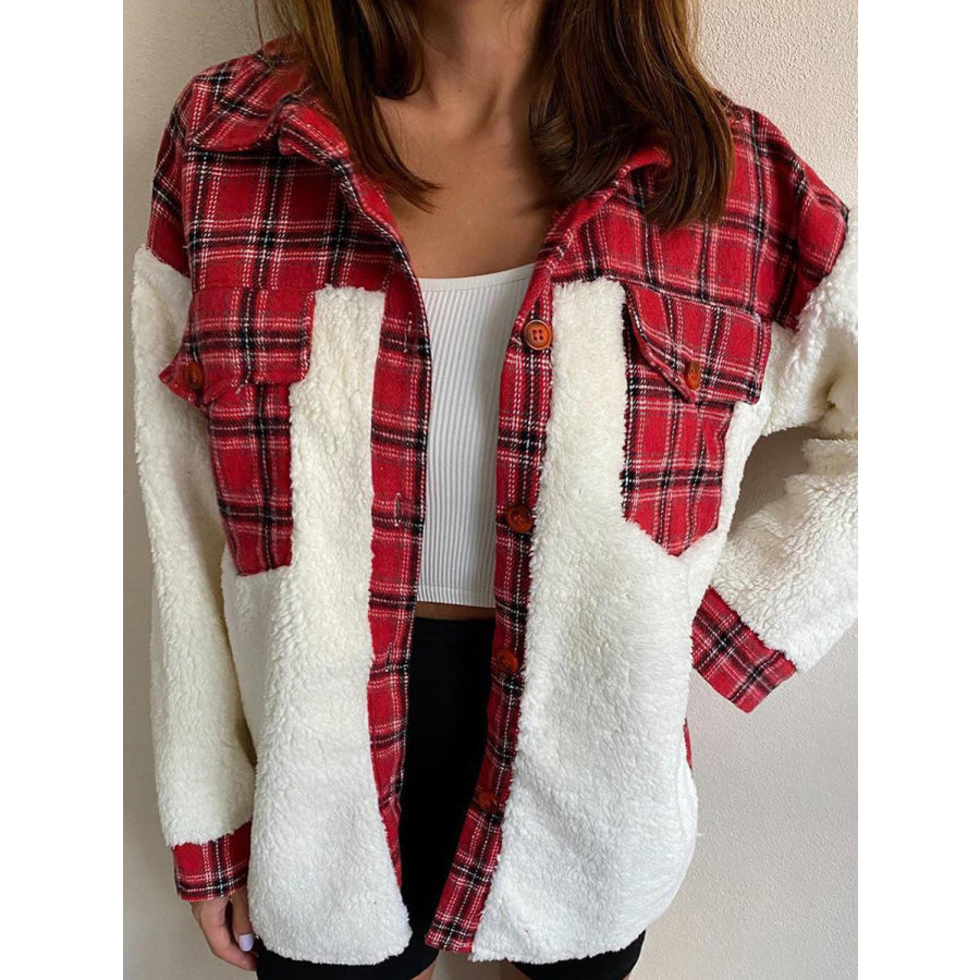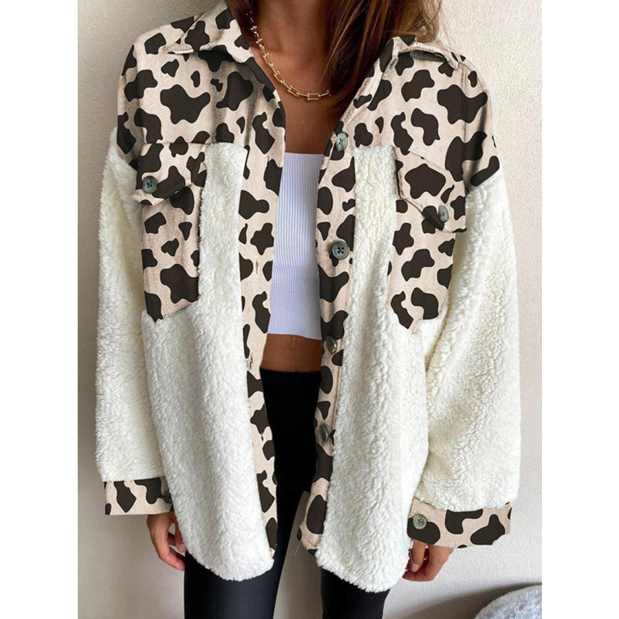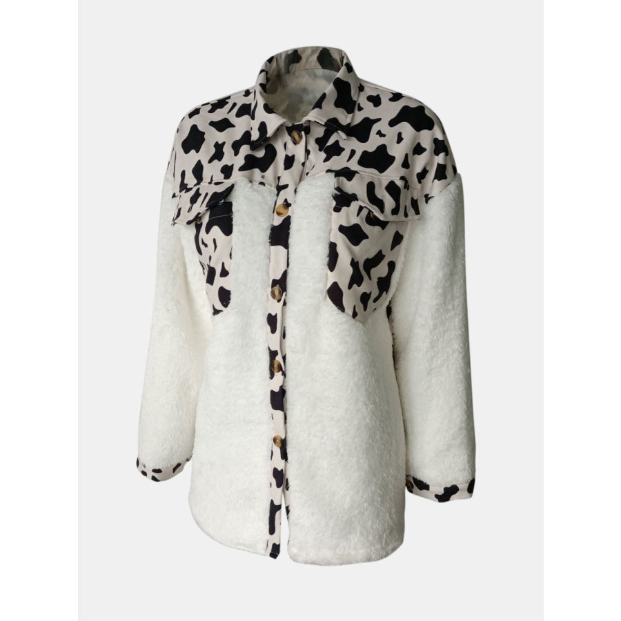 Fuzzy Button Up Long Sleeve Jacket