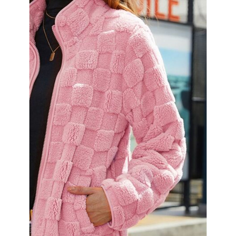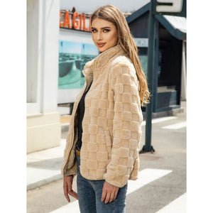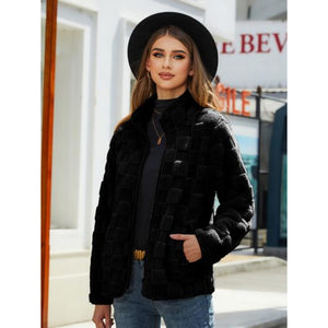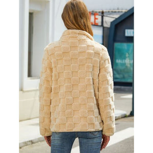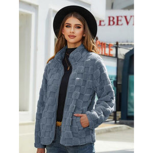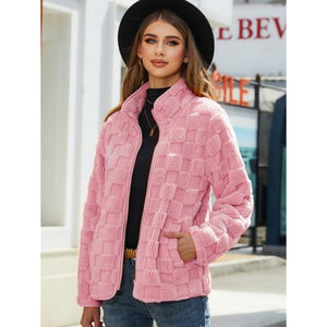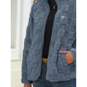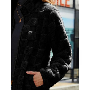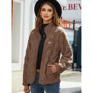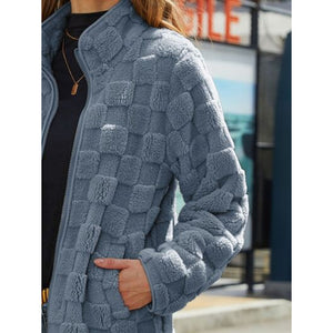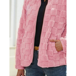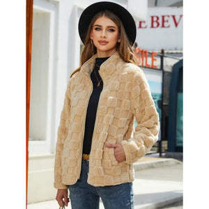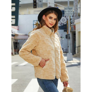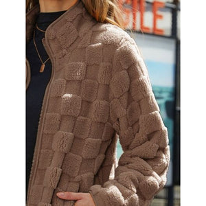 Fuzzy Checkered Zip Up Jacket