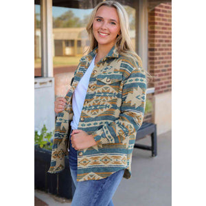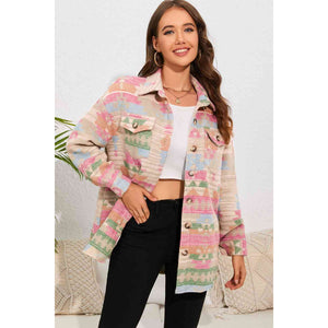 Geometric Button Down Collared Jacket