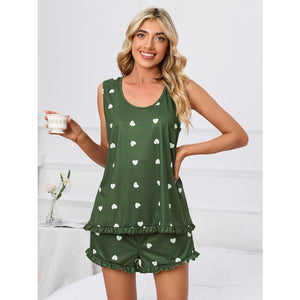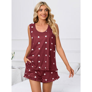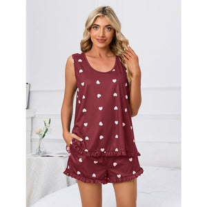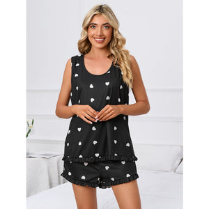 Heart Scoop Neck Tank and Shorts Lounge Set