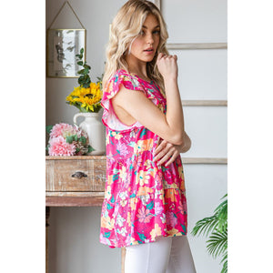 Heimish Full Size Floral Ruffle Sleeve Tiered Blouse