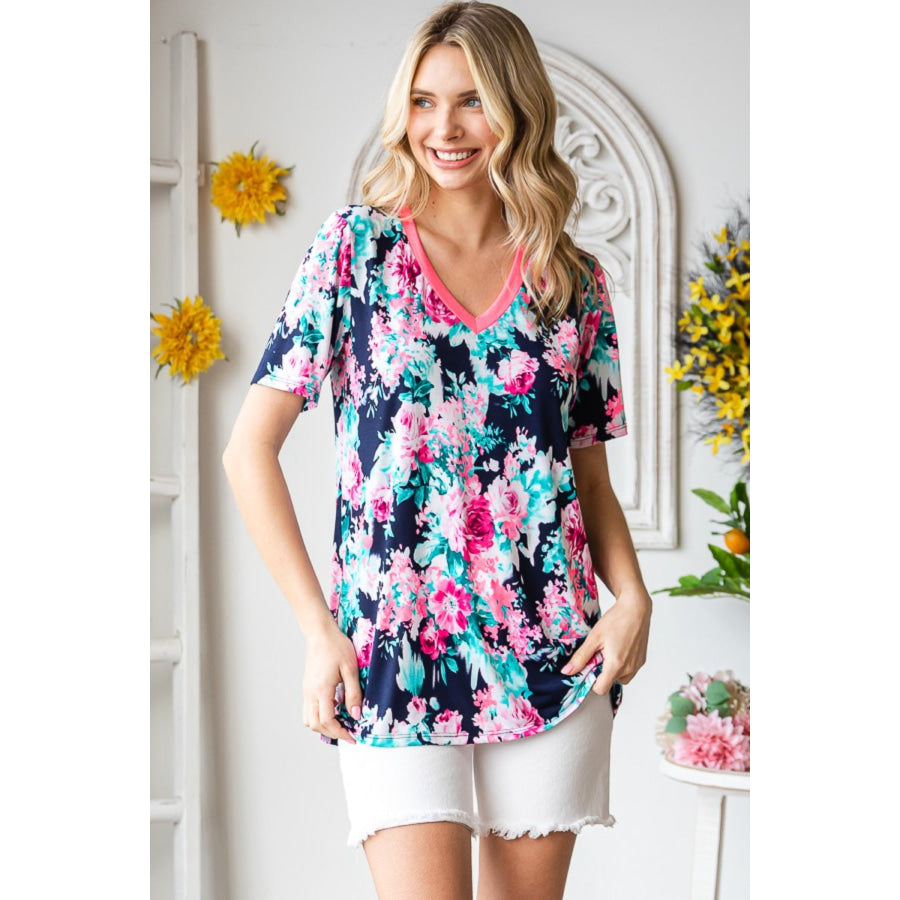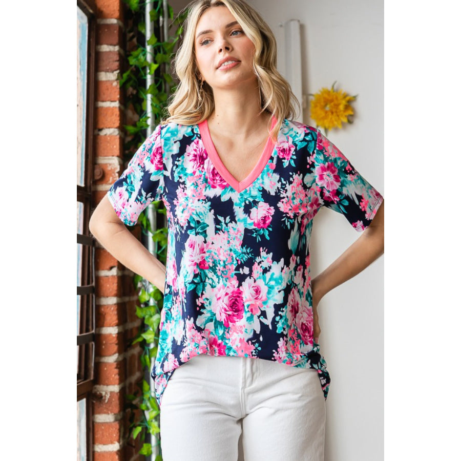 Heimish Full Size Floral V-Neck Short Sleeve T-Shirt