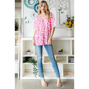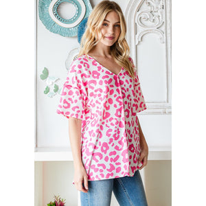 The leopard exposed seam short sleeve top is a bold and stylish addition to your wardrobe, perfect for making a statement. The leopard print design adds a touch of wild flair to any outfit, while the exposed seams create a trendy and edgy look. With short sleeves, this top is great for warm weather and can be easily layered under a jacket or cardigan. Pair it with high-waisted jeans for a casual chic look, or dress it up with a skirt and heels for a night out. The combination of leopard print and exposed seams gives this top a modern and fashionable edge that will elevate your style. Add this standout piece to your collection for a fierce and on-trend ensemble.