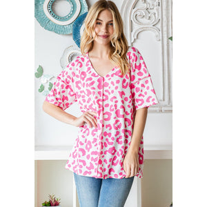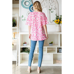 Heimish Full Size Leopard Exposed Seam Short Sleeve Top