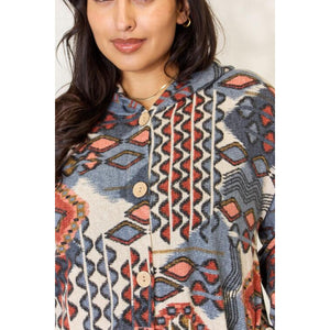 This unique Jacket combines the best of both worlds, featuring a playful multi-color print that adds a pop of personality to your outfit. The long puff sleeves bring a touch of drama, while the practical side pockets and button-down detail add functionality to your fashion statement.