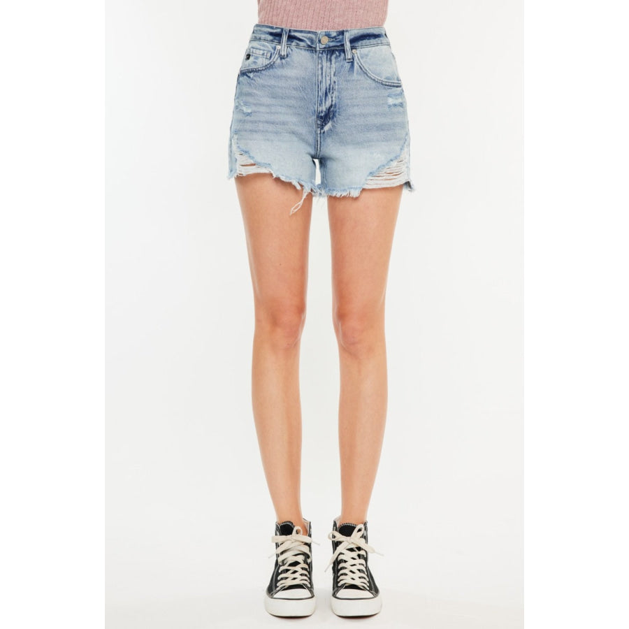 Kancan Distressed High Waist Denim Shorts with Pockets