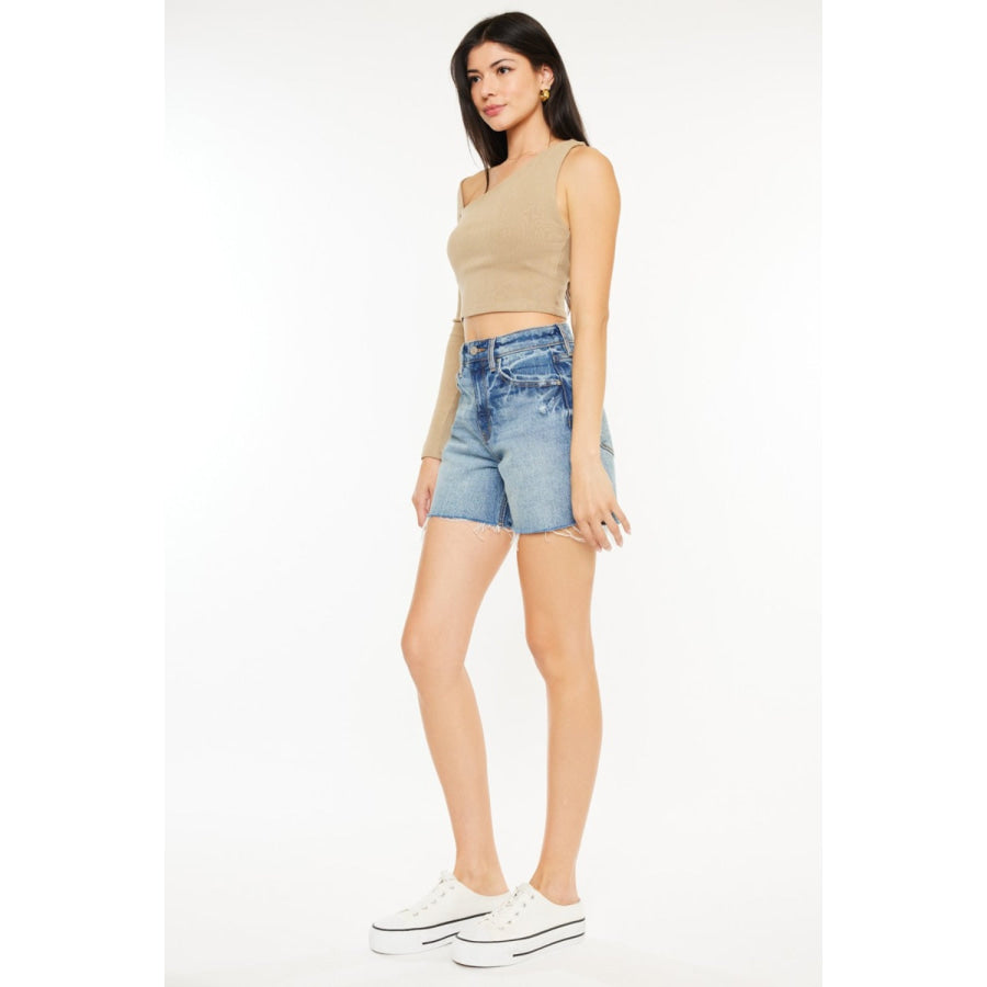 Kancan Full Size Raw Hem High Waist Denim Shorts