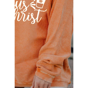 Letter Graphic Round Neck Long Sleeve Oversize Sweatshirt