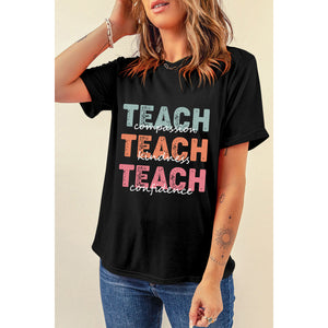Letter Graphic Round Neck Short Sleeve T-Shirt